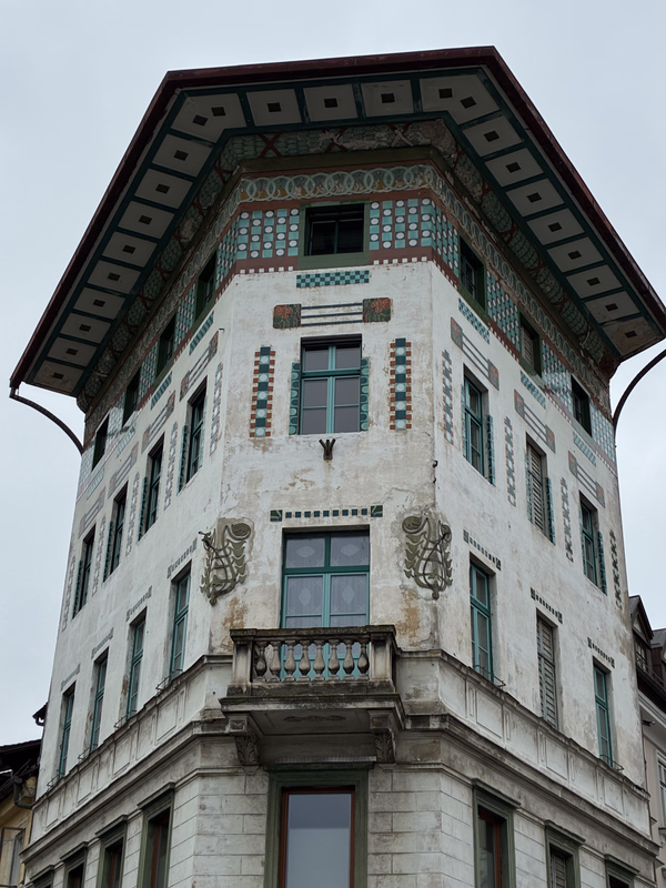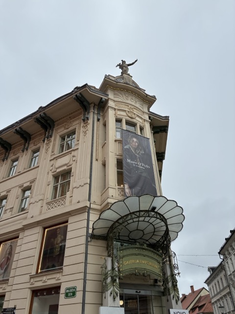 Walking around the streets of Ljubljana, we were surrounded by the incredible swirls, vines, flower motifs and asymmetrical qualities characteristic of early 20th-century Art Nouveau style. We saw curved façades, wrought-iron balconies shaped into flowing plants, stained-glass windows, and female figureheads. Basically, if you can imagine a fairy living in a building, it’s probably Art Nouveau. And it’s one of my favourite movements in art and architecture.