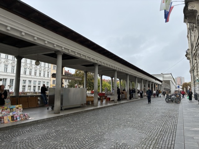 Plečnik was also heavily inspired by Ancient Greek architecture, and he is said to have sought to make Ljubljana a “new Athens”. He was able to design all the spaces needed to create an Ancient Greek city: a stadium, cemetery (necropolis), market square, covered walkway (stoa), meeting square (agora), and a mountain temple (acropolis). The covered walkway/market is a clear illustration of how Plečnik wanted to reflect the romance of Athens, with very Greek-looking columns blended with local Slovenian building materials. The practicality of a beautiful all-weather walkway – where people actually want to visit, catch up and shop – highlights Plečnik’s people-centred and historically informed approach to urban design.